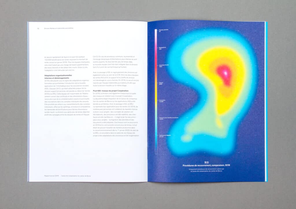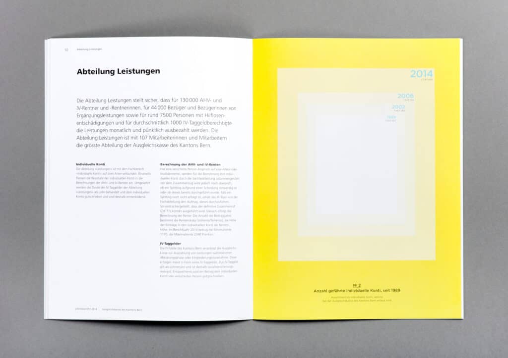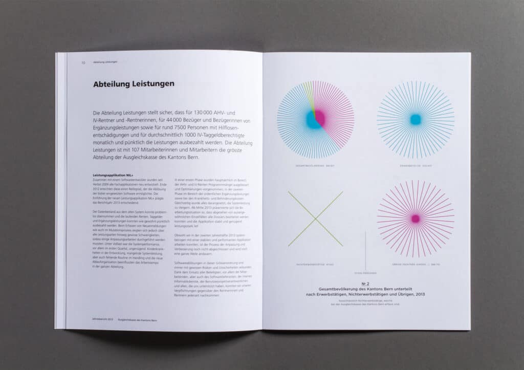 Pour la Caisse de compensation du canton de Berne, nous avons élaboré le rapport annuel de 2013 à 2021 que nous avons toujours complété par des graphiques interactifs. Ceux-ci présentaient des informations sur les employés de la CCB.