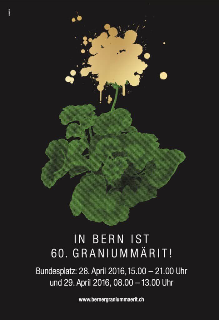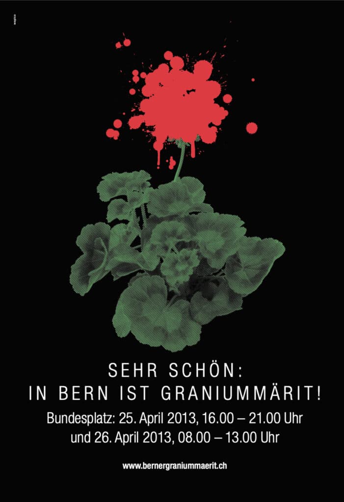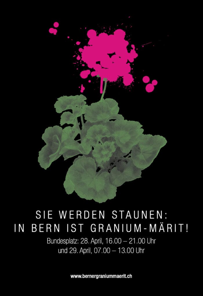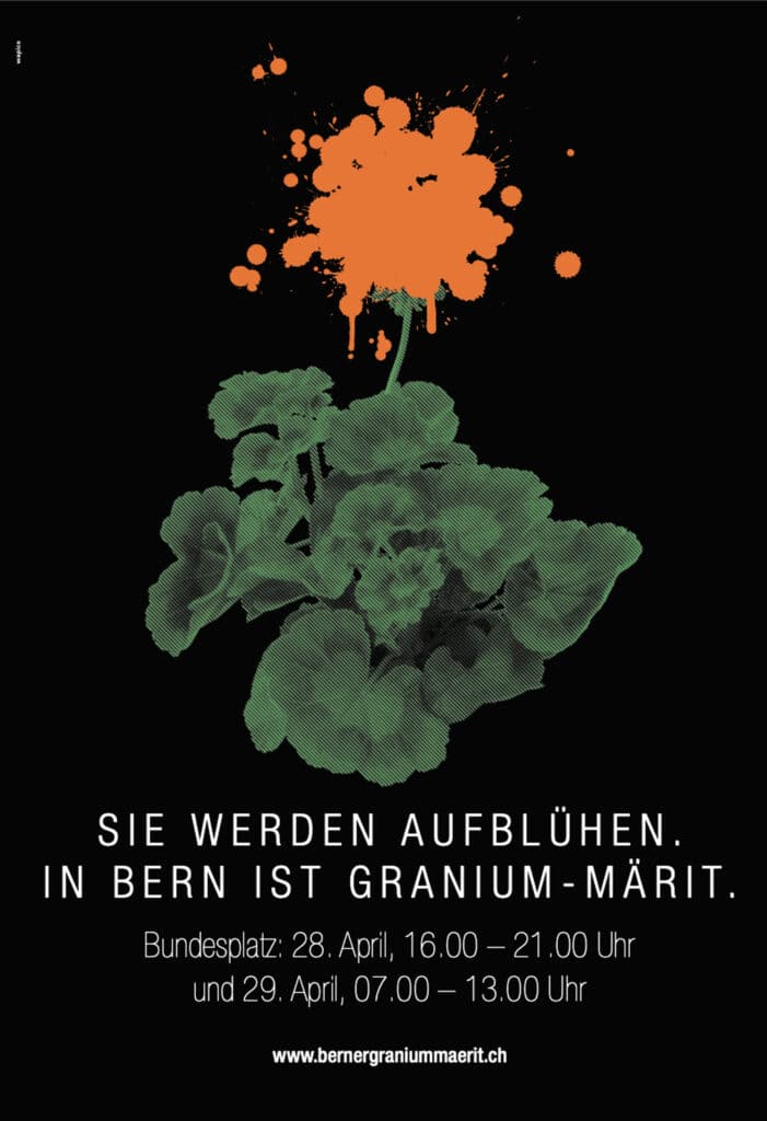 Depuis 2011, nous créons les affiches pour le Graniummärit de Berne et accompagnons cet événement jusqu’à aujourd’hui. Les affiches allient tradition et modernité : la fleur classique et traditionnelle reçoit une touche de couleur moderne, lui conférant ainsi une image fraîche et renouvelée. Cette approche donne à la fleur une apparence contemporaine et reflète l’atmosphère vivante du marché. Chaque année, le design est ajusté pour capturer au mieux l’esprit de l’événement.