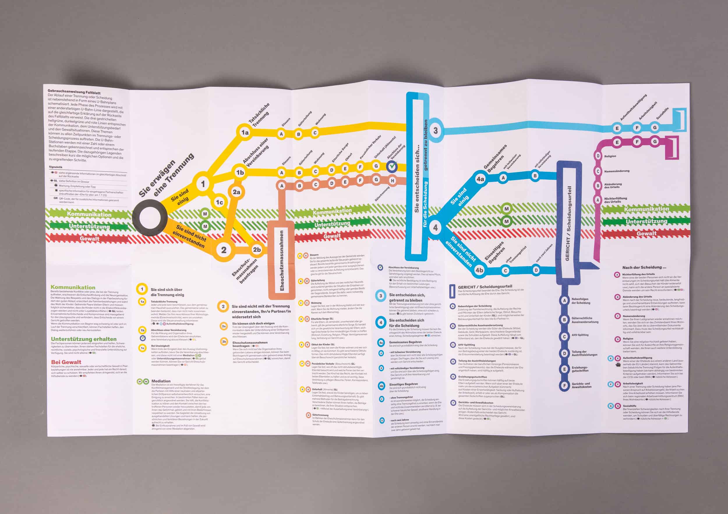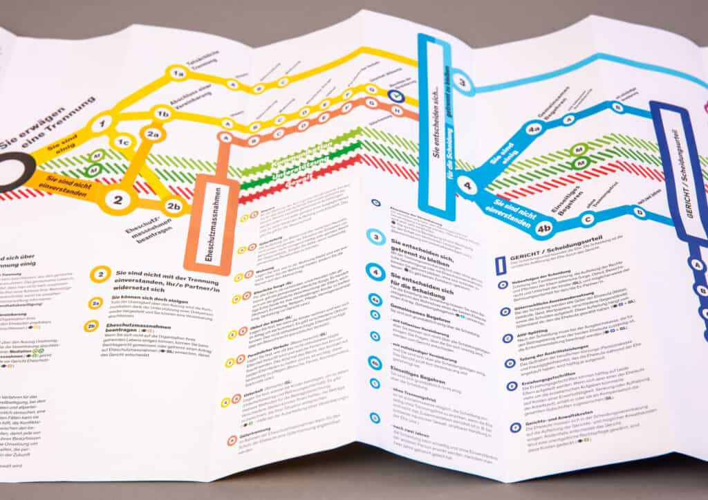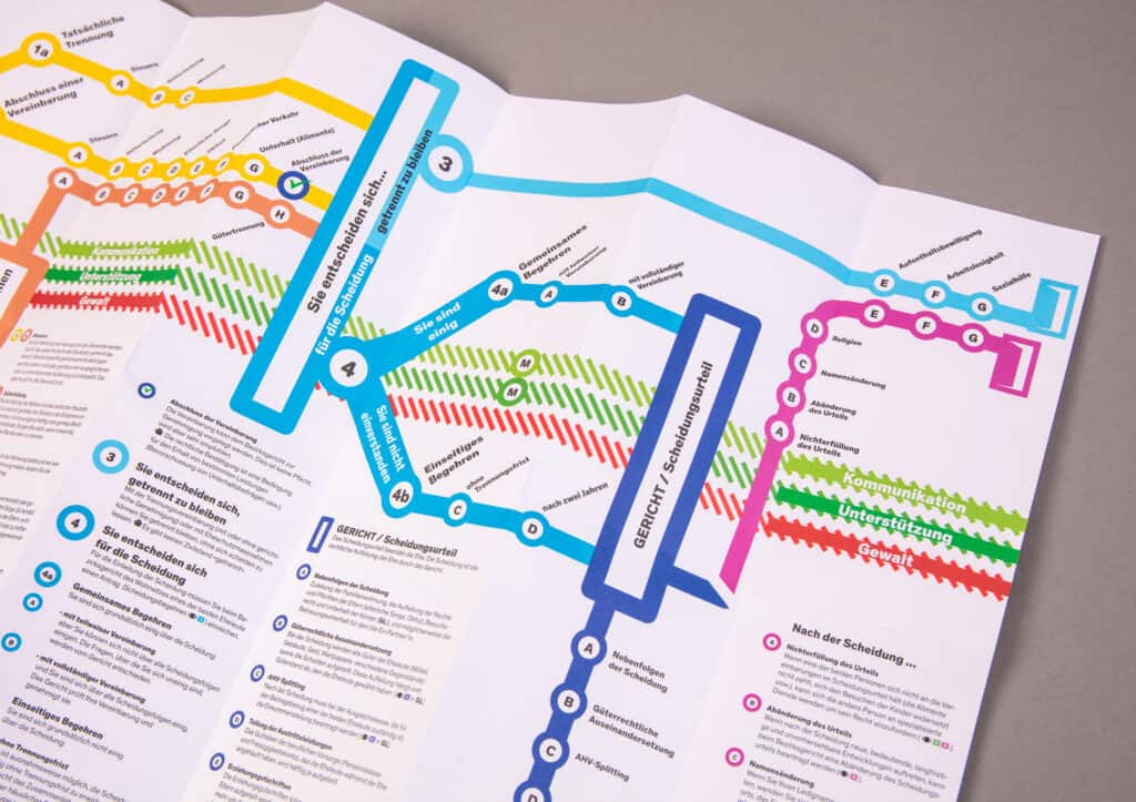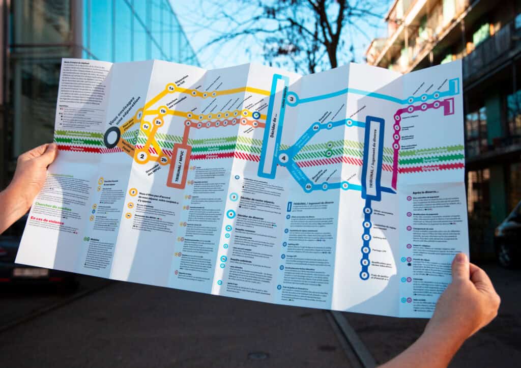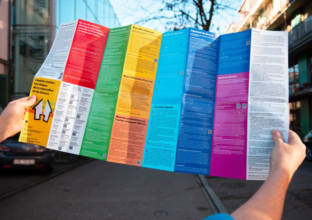 Nous avons créé la brochure « Couples mariée : Les étapes de la séparation et du divorce » pour offrir un aperçu clair du processus de séparation et de divorce. Elle explique les différentes étapes et fournit des informations utiles sur les aspects juridiques, financiers et émotionnels, afin de donner aux personnes concernées une orientation et un soutien.