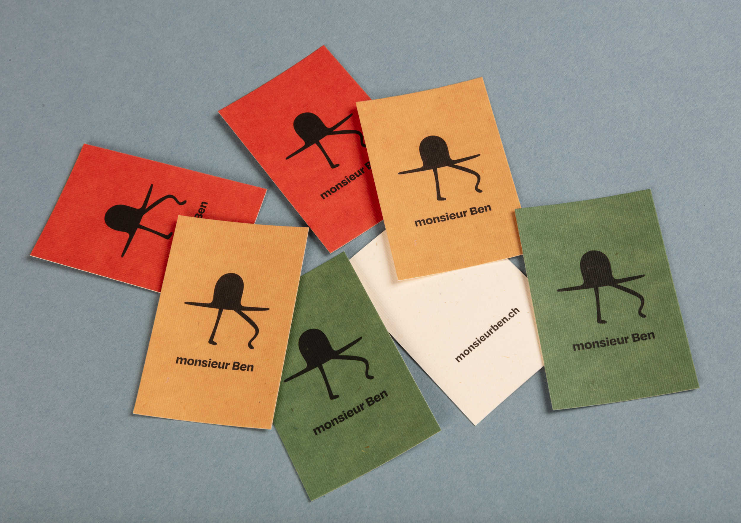 Pour le logo de Monsieur Ben, nous avons développé un caractère de champignon sympathique en tant qu’icône, qui dégage légèreté et convivialité. La palette de couleurs naturelles souligne la fraîcheur et la durabilité des produits, tandis que le caractère ludique rend le logo unique et accueillant.