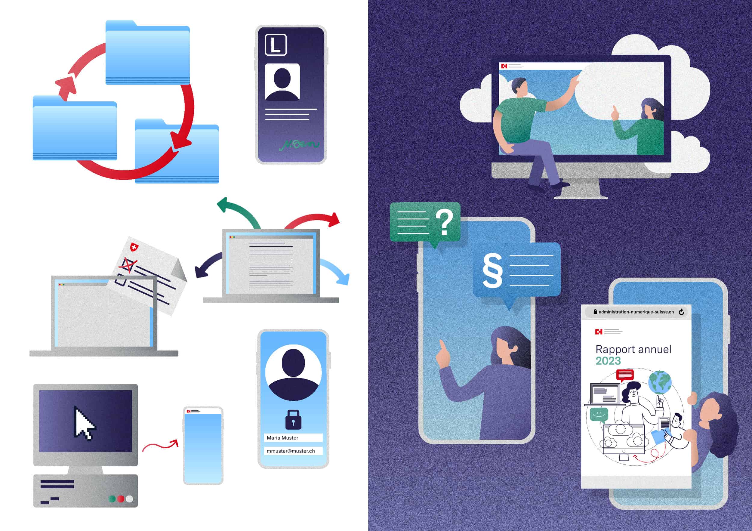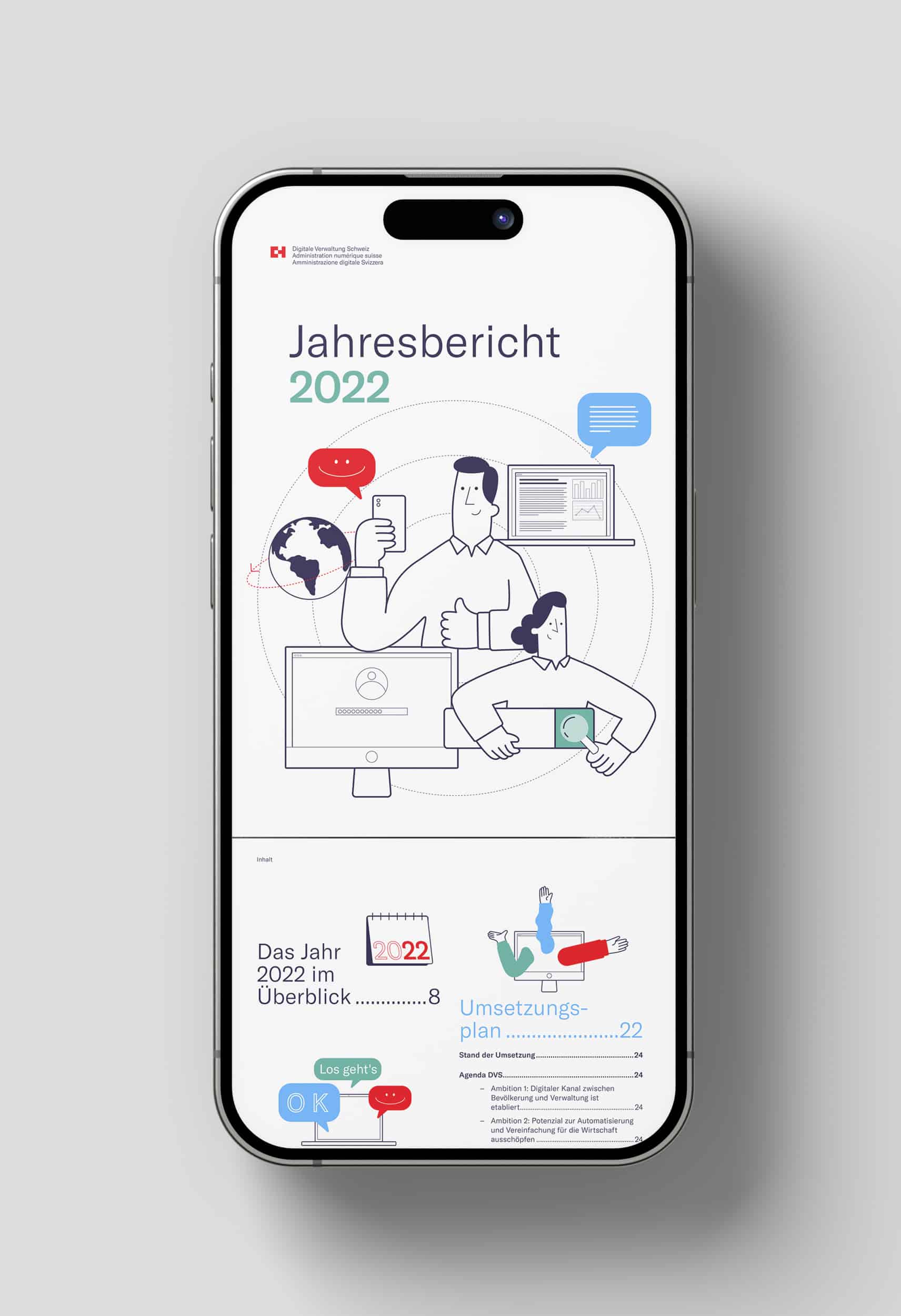 Für die Digitale Verwaltung Schweiz haben wir eine Vielzahl von Leistungen erbracht, die die Gestaltung unterschiedlicher Berichte (Print und Digital), Illustrationen sowie Grafiken umfassen. Diese unterstützen Inhalte visuell um die Berichte klar und ansprechend gestalten. Unsere Arbeit trägt dazu bei, komplexe Informationen barrierefrei, übersichtlich und verständlich zu präsentieren.