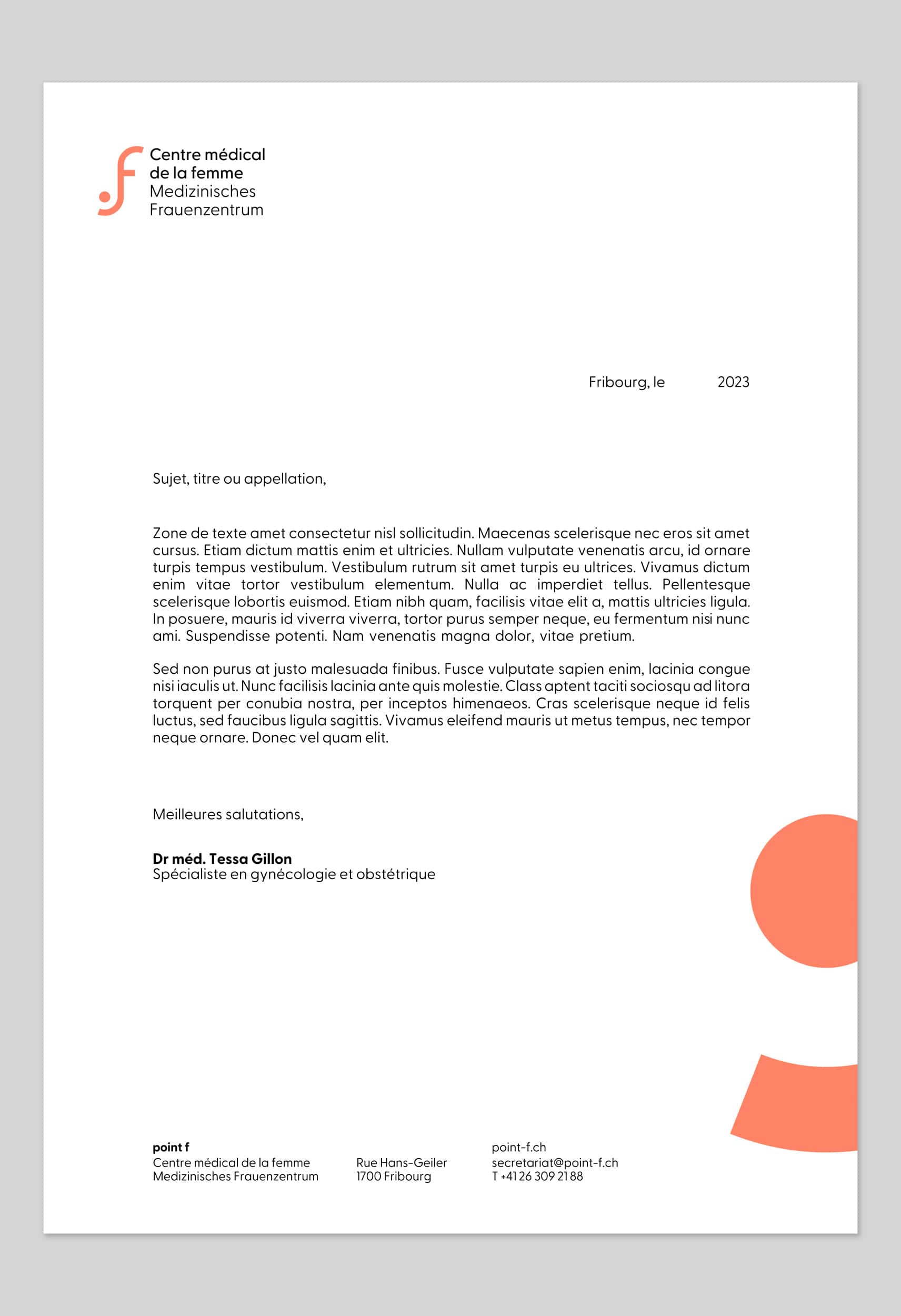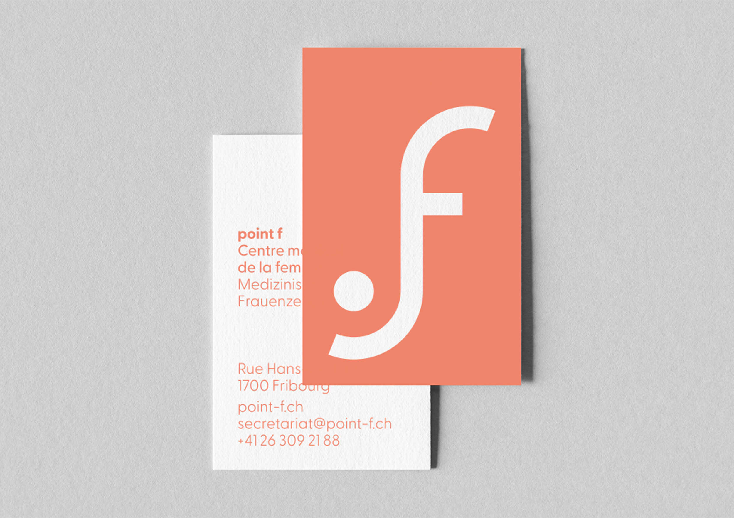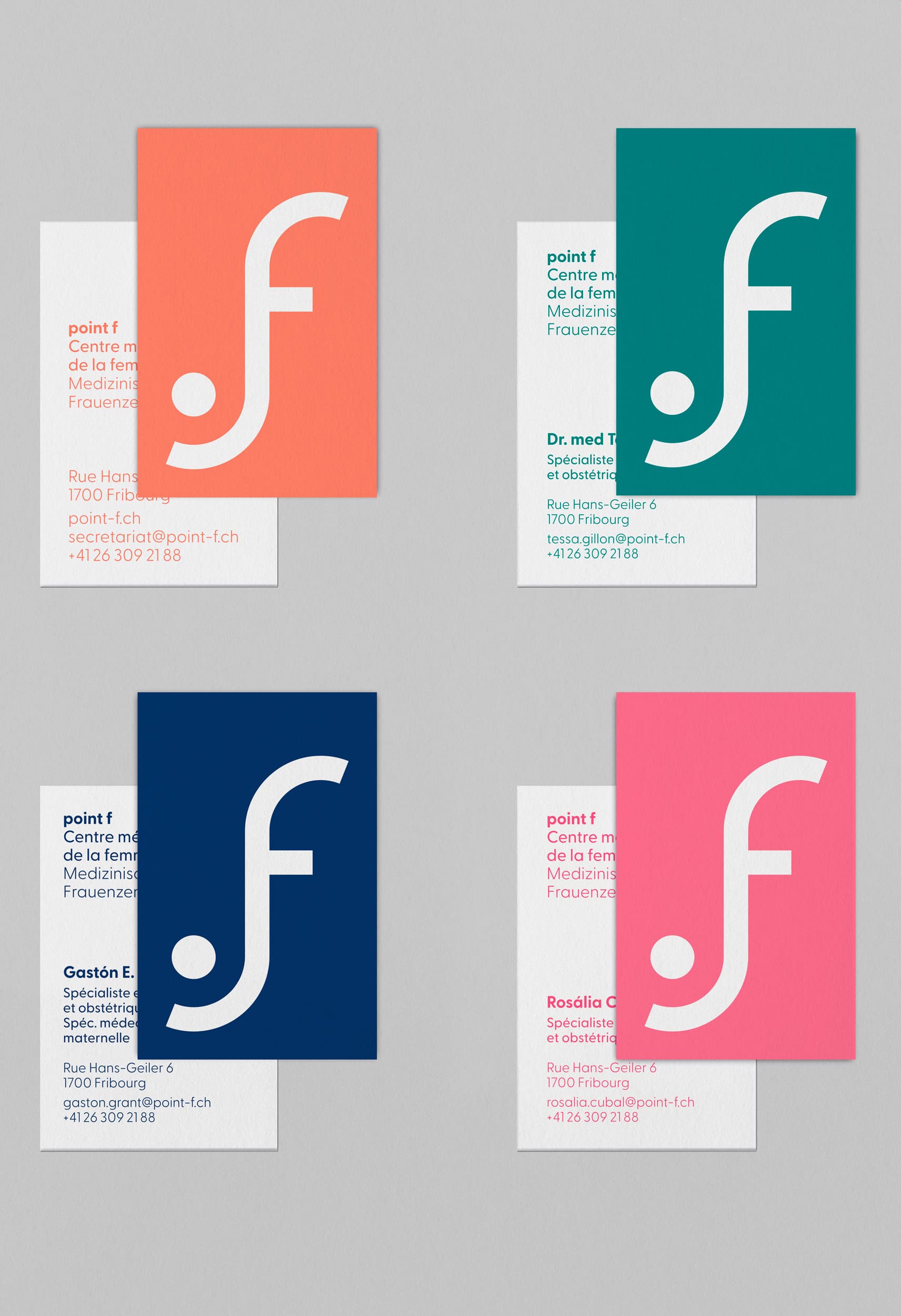 Für das Logo von point f haben wir ein Design entwickelt, das geometrische Formen, die an einen weiblichen Körper erinnern, mit einer zeitgemässen Farbpalette kombiniert.